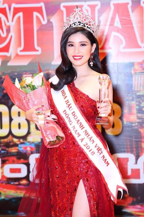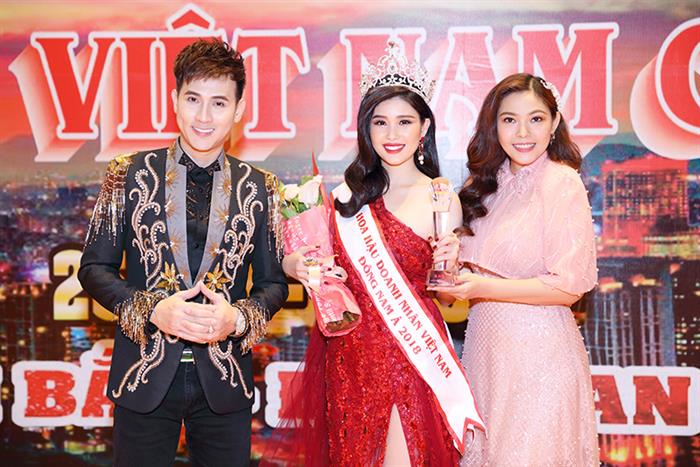 Với danh hiệu cao quý, Phạm Hoàng Diễm My được đích thân nhà sáng lập Hoa Hậu Doanh nhân Việt toàn cầu 2018 – Kim Thanh thảo cùng chủ tịch Tập Đoàn Sơn Bản Đường lên trao vương miện.