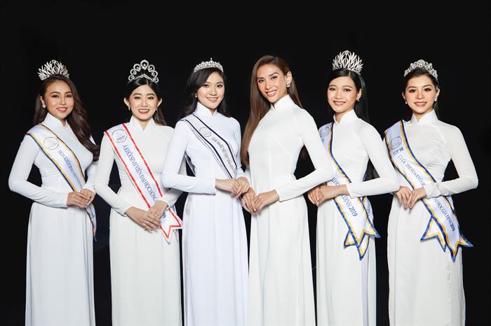 Ngoài bộ hình áo dài trắng chụp cùng 5 cựu hoa khôi, á khôi đến từ 5 trường đại học, Võ Hoàng Yến còn tung thêm bộ ảnh chụp đầm dạ hội lộng lẫy chụp cùng các mentor (người hướng dẫn). Hoa hậu Lê Âu Ngân Anh sẽ là một trong 5 mentor của các thí sinh khi bước vào vòng Nhà chung.