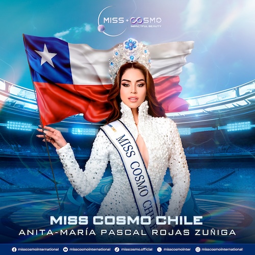 Một lần nữa, các đại diện của khu vực Nam Mỹ không làm cho người hâm mộ sắc đẹp thất vọng, Miss Cosmo Chile – Anita-María Pascal Rojas Zuñiga nhanh chóng nhận được sự ủng hộ của đông đảo khán giả ngay từ khi đăng quang tại quê nhà. Trên hành trình chinh phục vương miện Miss Cosmo Chile 2024, người đẹp 24 tuổi đã mang đến những màn thể hiện mãn nhãn và khả năng ứng xử khéo léo, giúp cô chiếm trọn cảm tình của khán giả ngay tại đêm chung kết. Trước đó, cô đã từng có mặt tại top thí sinh chung kết Miss Universe Chile 2020, sau đó đăng quang ở cuộc thi Hoa hậu Piel Dorada International 2021 và đạt Top 12 – Reina Hispanoamericana 2022 – cuộc thi nhan sắc lâu đời nhất dành cho riêng cho các cô gái vùng Nam Mỹ. Không chỉ có nhan sắc cuốn hút ngay cái nhìn đầu tiên, người đẹp 24 tuổi còn sở hữu tài năng trượt băng nghệ thuật và đã đạt chức vô địch khiêu vũ quốc gia vào năm 2015. Hiện tại, Anita-María Pascal Rojas Zuñiga đang là sinh viên năm thứ tư ngành Báo chí tại Đại học Andes.