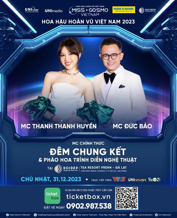 Bạn dẫn của MC Đức Bảo trên sân khấu quan trọng này chính là MC Thanh Thanh Huyền – một gương mặt quen thuộc của “Gia đình Hoàn vũ” khi có nhiều năm gắn bó ở nhiều vai trò. Thanh Thanh Huyền được xem là gương mặt MC nổi bật bậc nhất hiện nay với khả năng dẫn song ngữ, có trí nhớ siêu đỉnh, phong cách chuyên nghiệp, duyên dáng. Cô nổi tiếng với “tuyệt chiêu” dẫn chương trình dài hơi mà không cần kịch bản, thậm chí có thể dẫn dắt trôi chảy nội dung hơn 3.000 chữ, 75 tên riêng trong một chương trình. Chắc chắn, màn “song kiếm hợp bích” của bộ đôi Đức Bảo – Thanh Thanh Huyền là sự lựa chọn tuyệt vời và đúng đắn nhất Hoa hậu Hoàn vũ Việt Nam – Miss Cosmo Vietnam 2023, góp phần mang tới một đêm Chung kết trọn vẹn và bùng nổ.