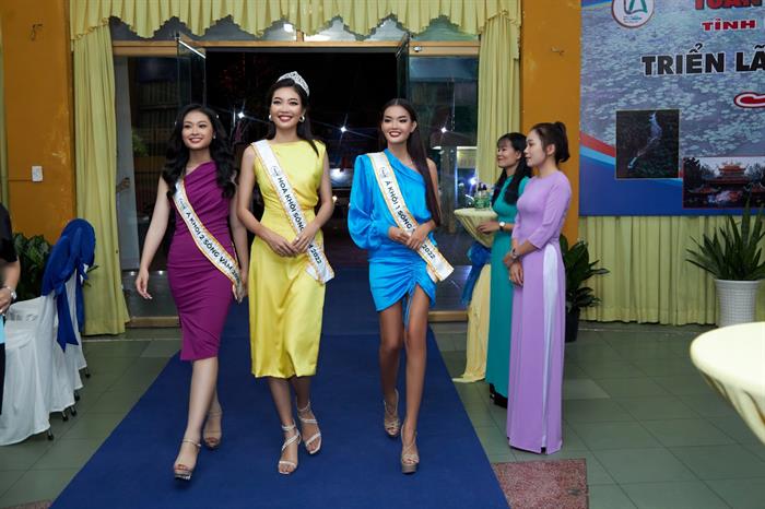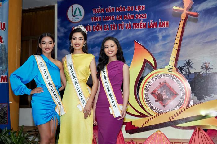 Tintuc - Sau khi đăng quang ngôi vị Hoa khôi Sông Vàm 2022, Hoa khôi Diễm Trinh và hai Á khôi Thanh Thanh, Ngọc Trân đã có những hoạt động đồng hành cùng “Tuần Văn hóa – Du lịch tỉnh Long An”.