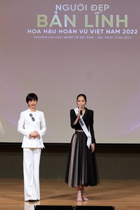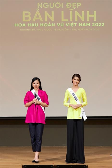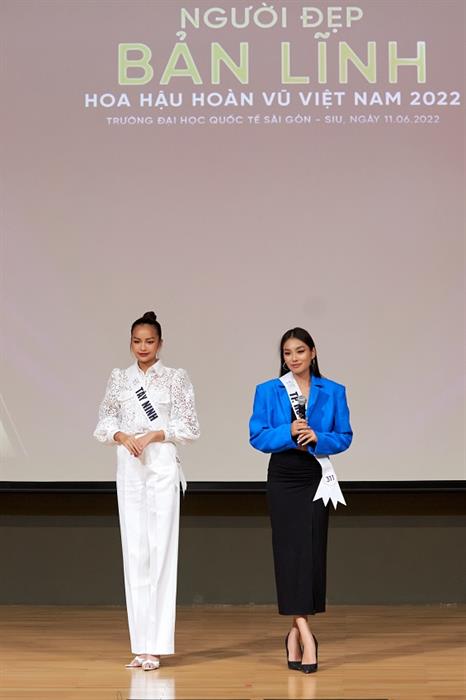 Tintuc - Sáng 11/06, các thí sinh của cuộc thi Hoa hậu Hoàn vũ Việt Nam 2022 đã hoàn thành phần thi Người Đẹp Bản Lĩnh tổ chức tại Trường Đại học Quốc Tế Sài Gòn (SIU). Người Đẹp Bản Lĩnh là Giải thưởng phụ chính thức nằm trong khuôn khổ cuộc thi Hoa Hậu Hoàn Vũ Việt Nam 2022 để thí sinh rèn luyện bản lĩnh, thể hiện sự tự tin, lan tỏa và truyền cảm hứng cùng những thông điệp tích cực đến cộng đồng.