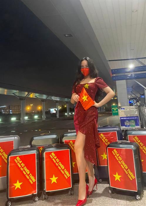 Đóng gói hơn 10 kiện hành lý của Bella Vũ Huyền Diệu tổng trọng lượng lên đến hơn 200kg, hành trang của em mang theo bao gồm trang phục dự thi, quà tặng cho các thí sinh, thuốc men, đồ ăn… Đặc biệt không thể thiếu lá cờ Việt Nam sẽ theo chân em đến đấu trường nhan sắc quốc tế.