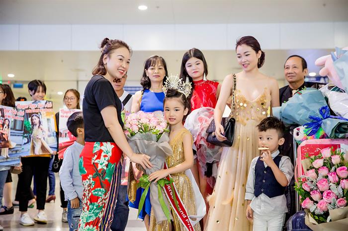 Tintuc - Là nhan sắc nhí đầu tiên của Hải Phòng đại diện Việt Nam đi thi và đăng quang Hoa hậu Hoàn vũ nhí thế giới 2019, Nguyễn Ngọc Bảo Anh cùng mẹ được khán giả chào đón vô cùng nồng nhiệt tại sân bay.