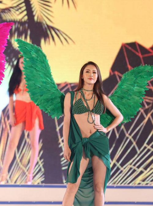 "Sắc màu của Biển" với các mẫu trang phục Bikini đi biển, kết hợp với khăn quấn bên ngoài hoặc chân váy cùng những phụ kiện mũ, kính túi... tất cả đều được làm từ các chất liệu tự nhiên và lấy ý tưởng từ Biển Sầm Sơn