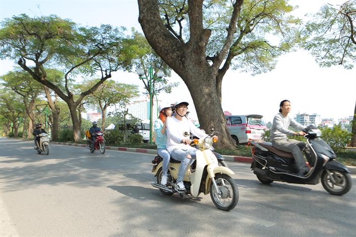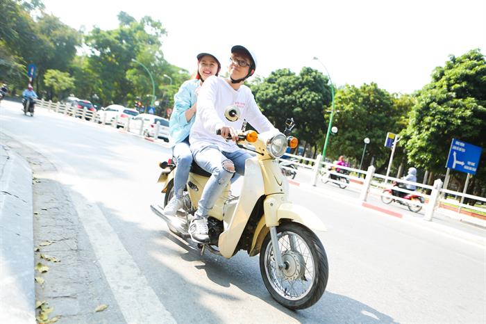 Có dịp dạo phố vào buổi sáng yên bình cùng với nét đẹp cổ kính của Hà Nội, Bùi Anh Tuấn quyết định chở Liz Kim Cương chạy dọc theo con đường Thanh niên đẹp nhất Thủ đô và lãng mạn nhất Hà Nội trên chiếc xe Cub. Cả hai cũng đã dừng chân tại một ngôi chùa cổ nhất Hà Nội với bề dày lịch sử, có giá trị về tâm linh và thu hút khách du lịch khi ghé thăm Thủ đô.
