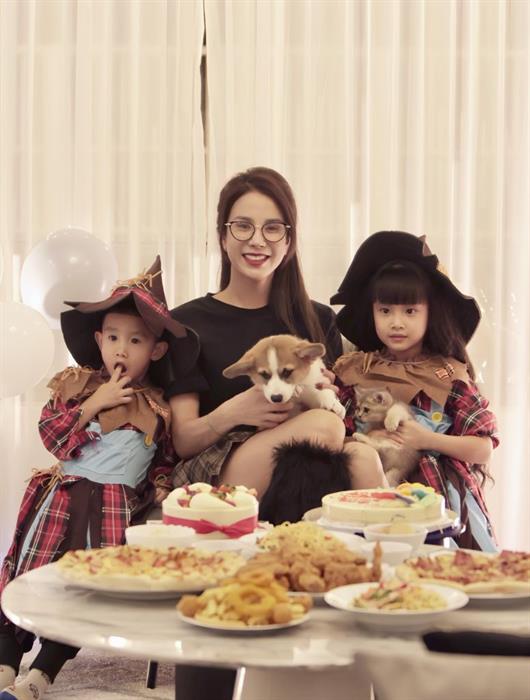 Diệp Lâm Anh cùng hai con rạng rỡ và hạnh phúc trong buổi tối Halloween, cũng trùng với sinh nhật của hai bé. Được biết, hai con Diệp Lâm Anh cùng chào đời vào dịp lễ Halloween nên ngày sinh nhật năm nay, các bé được mẹ hóa trang thành những phù thủy nhí.