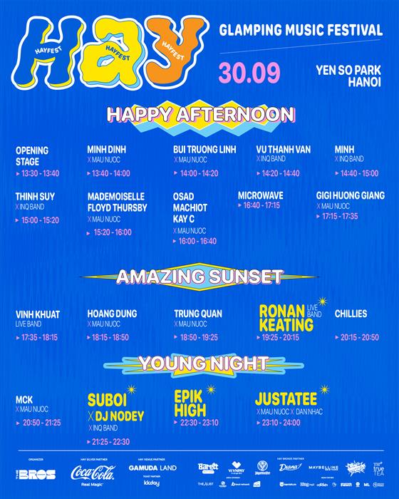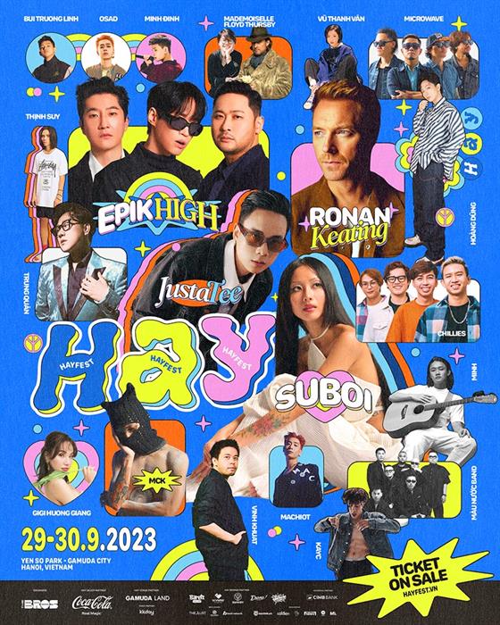 Trong đó phải kể đến 2 tên tuổi quốc tế gắn liền với thanh xuân của nhiều khán giả trẻ như Ronan Keating và Epik High cùng 2 rapper hàng đầu Việt Nam là Suboi và JustaTee. BTC của HAY Fest 2023 mới đây cũng đã tung ra set list “đỉnh của chóp" xuyên suốt hơn 10 tiếng đồng hồ để khán giả có thể tận hưởng một bữa tiệc âm nhạc đa trải nghiệm đặc sắc nhất.