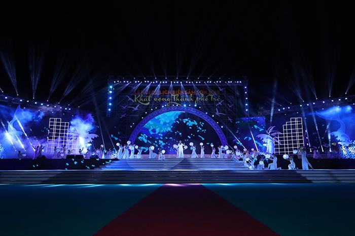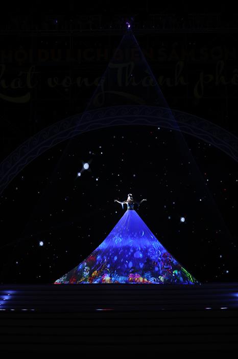 Ngay mở đầu chương trình, Lễ hội du lịch biển Sầm Sơn đã khiến hàng ngàn khán giả phải giơ điện thoại lên không ngừng quay chụp với màn múa tương tác với công nghệ 3d mapping huyền ảo có tên “Đại dương xanh”. Nữ đạo diễn Lê Hải Yến đã lần đầu tiên táo bạo sử dụng công nghệ 3D mapping chuyển động ở sân khấu ngoài trời, giữa điều kiện gió khá mạnh trên bãi biển Sầm Sơn nhưng đã tạo được hiệu ứng tối ưu không thua kém trong không gian nhà hát khiến khán giả vô cùng phấn khích. Trong vai nữ hoàng đại dương, diễn viên múa đã khoác lên mình chiếc váy khổng lồ và ánh sáng của công nghệ mapping chiếu lên chiếc váy hình ảnh đại dương xanh kỳ ảo với muôn loài sinh vật biển đẹp lộng lẫy. Dường như cả đại dương đã hiện lên trong mắt khán giả vô cùng đẹp mắt khi dàn diễn viên múa trong hình ảnh những con sứa khổng lồ lấp lánh sáng xuất hiện trên sân khấu. Đạo diễn Hải Yến tiết lộ, để hoàn thành tiết mục này vô cùng khó khăn vì nhân vật nữ hoàng phải trồi lên từ lòng sân khấu với bàn nâng cao 4m. E kip đã phải tập dượt tại thực địa rất nhiều ngày nhằm cố định được váy của diễn viên, gió có thể làm hỏng tiết mục bất cứ lúc nào nếu kỹ thuật không chuẩn xác. Cuối cùng, khán giả đã được mãn nhãn với “Đại dương xanh” kỳ ảo qua tiết mục này.