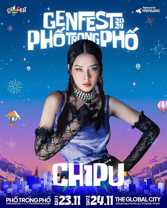 Chi Pu cũng là một ẩn số thú vị tại GENfest 2024, bởi trước đó, Chi Pu liên tục để lại dấu ấn với những màn trình diễn vừa sôi động vừa kết hợp vũ đạo quyến rũ và tạo hình đẹp mắt. Hành trình âm nhạc được đầu tư chỉn chu của Chi Pu với loạt hit như Đóa Hoa Hồng, Anh Ơi Ở Lại, Mời Anh Vào Team Em… sẽ được tái hiện trên sân khấu GENfest: “Trong bữa tiệc âm nhạc này, Chi Pu chắc chắn sẽ mang đến rất nhiều bất ngờ cho phần trình diễn của mình. Có cả những bài hát mà rất nhiều khán giả yêu thích, cũng như những bài hát mới trong EP Flexible mà Chi mới ra mắt”.