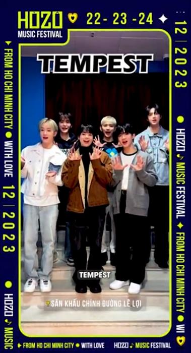 Mở đầu clip, Tempest thực hiện khẩu hiệu đặc trưng và đồng thành nói lời chào bằng tiếng Việt:“Xin chào Việt Nam! Chúng mình là Tempest”. Sau đó, thành viên Ahn Hyeongseop đại diện nhóm bày tỏ bằng tiếng Hàn: “Chúng mình rất háo hức được thông báo đến các bạn, chúng mình sẽ có mặt tại TPHCM trong HOZO Music Festival vào ngày 23/12 sắp tới. Cùng đón chờ những màn trình diễn đặc biệt Tempest sẽ chuẩn bị cho các bạn tại HOZO nhé!”.