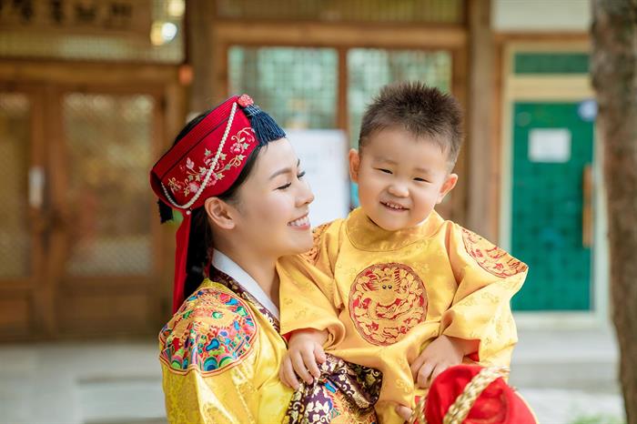 Nên duyên tại Hàn Quốc, Hoa hậu Nguyễn Thị Thùy có tổ ấm viên mãn với ông xã cảm thông, thấu hiểu hết mực cùng cậu con trai dễ thương. Mang hai dòng máu Việt – Hàn, bé được ba mẹ đặt tên Kim Seo Hoo cùng tên tiếng Việt là Gia Bảo.