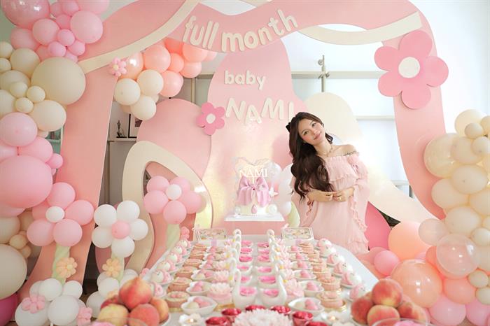 Vừa qua, Lucie Nguyễn và Tuấn Dương cũng chia sẻ hình ảnh trong buổi lễ đầy tháng con gái đầu lòng. Từ những món đồ lễ theo nghi thức truyền thống đến không gian đều được Lucie chuẩn bị, trang trí rất tỉ mỉ theo tông màu hồng chủ đạo.