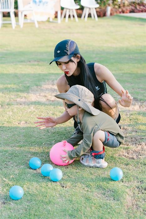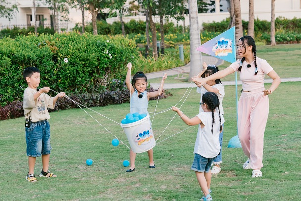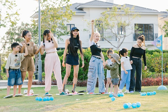 Tại đảo đô thị Swan Bay, mọi người cùng nhau tham gia các hoạt động đòi hỏi tính đồng đội và sự khéo léo. Khoảnh khắc những bà mẹ ngồi cổ vũ, động viên tinh thần các bé khiến người xem thích thú.