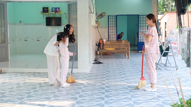 Sau một lúc tiếp cận em gái bằng những lời lẽ quan tâm, Tuệ Lâm lúc này cũng thành công khi Tuệ An ngừng việc giận dỗi và chịu đến ăn sáng cùng mẹ và chủ nhà. “Tuệ Lâm biết cân bằng, biết dùng tình yêu thương để giải quyết mọi vấn đề của 2 chị em. Cũng chính sự yêu thương đấy mà Tuệ An cũng cảm nhận được, nên bé cũng rất là thương chị” – Phạm Quỳnh Anh chia sẻ về 2 đứa con gái lớn của mình.