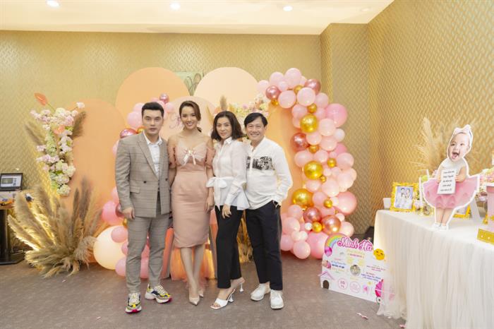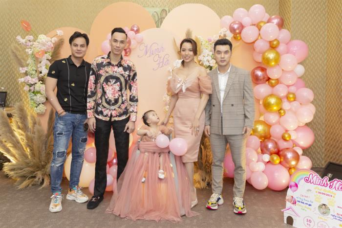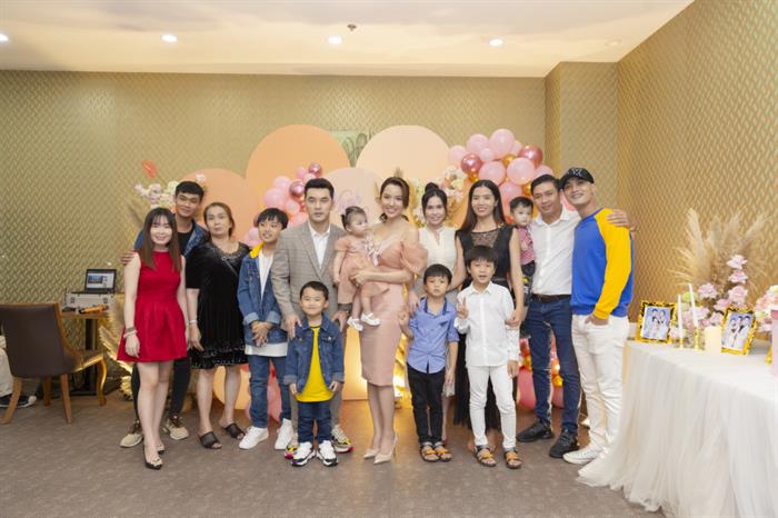 Buổi tiệc không chỉ để chúc mừng con gái với nhiều điều may mắn, ăn mau chóng lớn mà cũng là dịp để các anh em tụ họp với nhau, cùng ăn uống và trò chuyện tưng bừng. Phạm Quỳnh Anh diện trang phục giản dị và đưa bé gái thứ 2 đi dự tiệc. Thu Thủy sau sinh chưa bao lâu đã được ông xã đưa đi gặp gỡ đồng nghiệp. Dương Ngọc Thái cùng vợ bầu cũng đến chung vui với các anh em. Ê-kíp Chàng Phi Công của em cũng có dịp gặp gỡ và họ “quậy” cũng rất tưng bừng sau thời gian làm việc ăn ý.