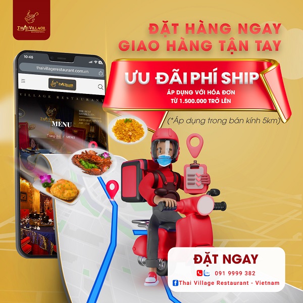Tintuc - Nhà hàng Thai Village Lý Tự Trọng cung cấp dịch vụ Giao Hàng Tận Nơi, giúp cho khách hàng muốn mua mang về tận nơi dễ dàng, mang cả tinh hoa ẩm thực hải sản thượng hạng với menu từ 50 món ngon về tận nhà. Nhanh tay đặt món để được thưởng thức các món ngon chuẩn vị nhé.