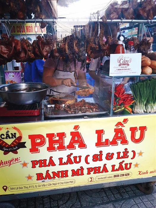 Một chiều lang thang trên con đường Lê Đức Thọ - Gò Vấp, nhiều người sẽ bắt gặp một gian hàng phá lấu khá hoành tráng với những rất nhiều sự lựa chọn, nổi bật là bao tử, lưỡi, thú linh. Đầu tiên, tôi chọn cho mình ổ bánh mì phá lấu. Với cái giá khá là dễ chịu so với mặt bằng chung, từ 12- 15.000đ, ổ bánh mì đã thật sự “gây thương nhớ”. Thế là tôi lại tìm hiểu thêm những món đặc biệt khác tại đây để mang về giới thiệu cho bạn bè và gia đình thưởng thức.