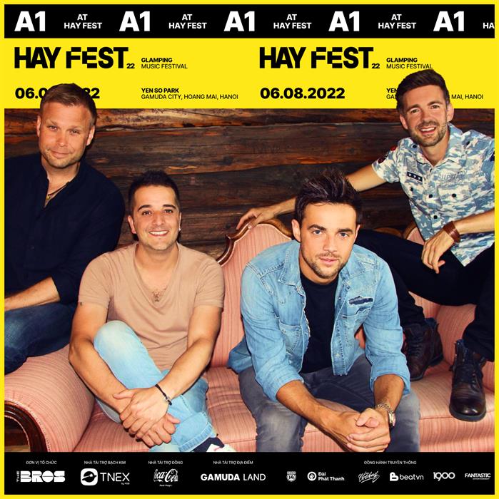 A1 là nhóm nhạc nam gồm 4 thành viên người Anh - Nauy được thành lập vào năm 1998. Chỉ trong 4 năm đầu tiên, các chàng trai đã đưa âm nhạc của mình vươn xa khỏi phạm vi châu lục và chạm đến trái tim của nhiều khán giả trẻ với nhiều bản hit như Every Time, Take On Me, Like A Rose... Đĩa đơn đầu tay Be The First To Believe đã xuất sắc lọt vào bảng xếp hạng đĩa đơn của Anh ở vị trí 6 vào giữa năm 1999. Sự thành công của A1 ngày càng lan rộng trên thế giới và đặc biệt là Đông Nam Á. A1 cũng từng 3 lần xuất sắc giành chứng nhận vàng tại BRIT Awards. Tại HAY Glamping Music Festival, A1 sẽ đưa nhiều khán giả về với những ký ức thanh xuân của tuổi trẻ - nơi của sự thơ mộng từng một thời “điên đảo” vì các “hoàng tử sơn ca”.