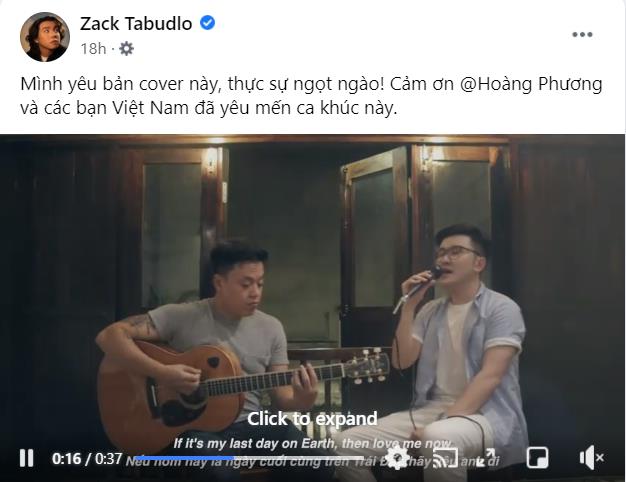 Nam ca sĩ Zack Tabudlo nhiệt tình khen ngợi bản cover ngọt ngào ấm áp của Hoàng Phương