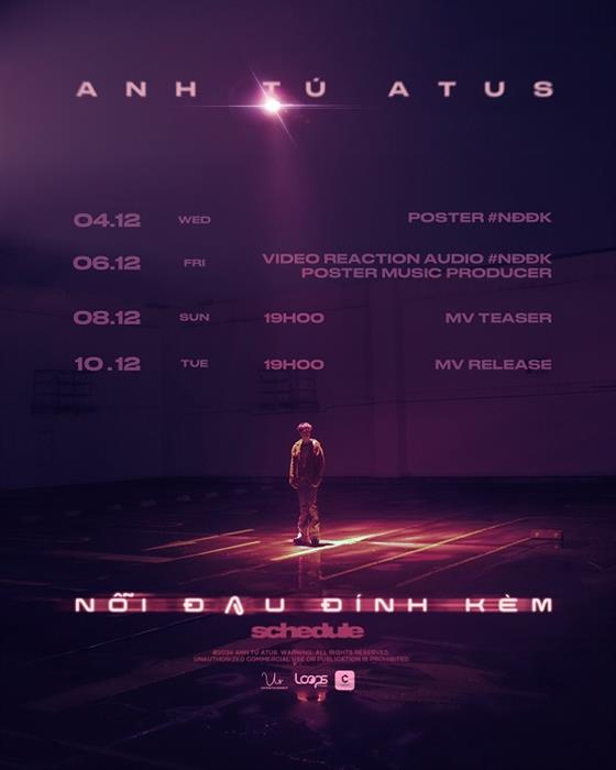 Trong poster vừa đăng tải, người hâm mộ thấy được tạo hình trong MV Nỗi Đau Đính Kèm của Anh Tú Atus. Theo đó, không còn chàng thơ hay phong cách tổng tài như thường thấy, ca sĩ khoác lên mình vẻ bụi bặm, phong trần hơn.