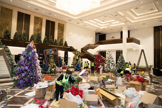 Tintuc - Đàm Vĩnh Hưng đã “hô biến” sảnh chờ của FLC Hạ Long trở nên lộng lẫy, hoành tráng, ngập tràn không khí giáng sinh với hàng chục cây thông phủ đầy đồ trang trí đẹp mắt.