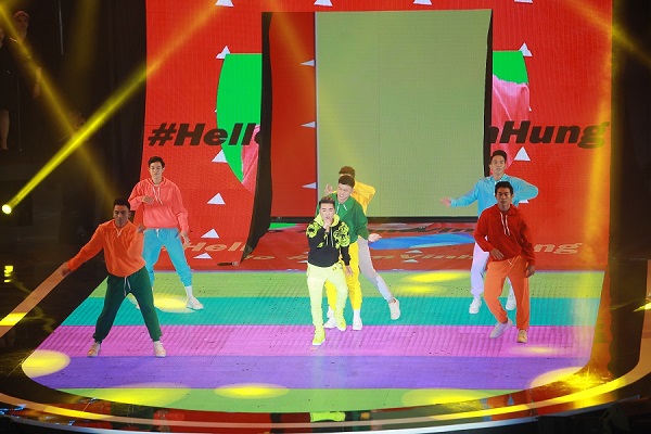 Đàm Vĩnh Hưng bất ngờ xuất hiện với phần trình diễn đầy sắc màu, cùng vũ đạo phóng khoáng trong ca khúc Hello. Đây cũng là bản hit đánh dấu sự lột xác táo bạo của anh trong năm qua.