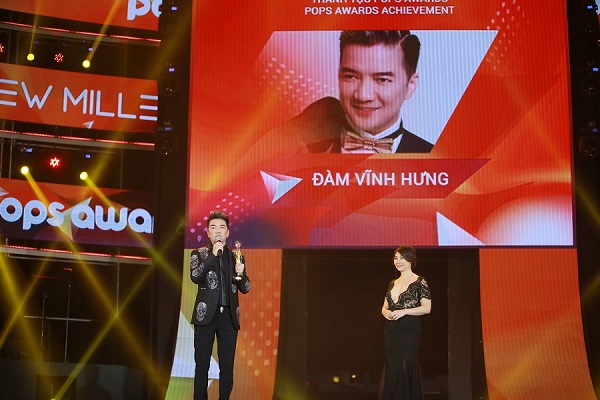 Niềm hạnh phúc càng được trọn vẹn hơn với “Ông hoàng nhạc Việt” và những người hâm mộ khi cái tên Đàm Vĩnh Hưng đã được xướng lên trong Top 10 Thành Tựu POPS Awards