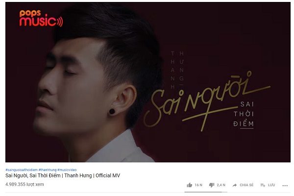 Sau thời gian“làm mưa làm gió” với ca khúc tự sáng tác Sai người sai thời điểm trên các bản xếp hạng âm nhạc online, đồng thời thu về gần 100 triệu lượt nghe từ các video fanmade và lyric video chính thức trên YouTube, nam ca sĩ Thanh Hưng (Top 10 Vietnam Idol 2012) đã tung ra MV cùng tên như một món quà tri ân dành cho người hâm mộ. Gây ấn tượng với sự sáng tạo trong cách kể chuyện, MV này cũng đã nhanh chóng thu về hàng triệu lượt xem.