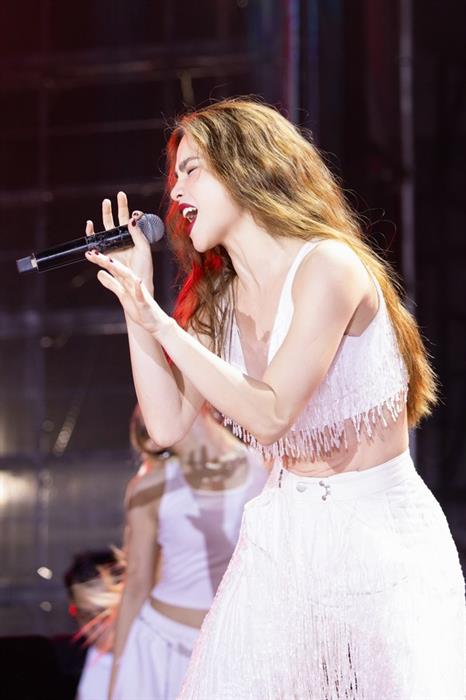 Hồ Ngọc Hà mang đến một phần trình diễn đỉnh cao với ca khúc “What Is Love”. “Nữ hoàng giải trí” xuất hiện trên sân khấu với sự tự tin và phong cách không thể nhầm lẫn. Bộ trang phục gợi cảm khoe trọn cơ bụng săn chắc của cô đã ngay lập tức thu hút ánh nhìn của mọi người. Không chỉ vậy, giọng hát nội lực và vũ đạo chuyên nghiệp của Hồ Ngọc Hà đã khiến khán giả như bị cuốn vào từng động tác, từng giai điệu. Sau đó, sự kết hợp của Hồ Ngọc Hà và Hương Giang với dàn 6 nghệ sĩ trong line up đã khép lại đêm nhạc một cách đầy ấn tượng.