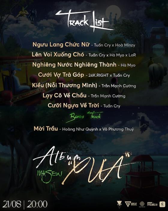 Tối 21/8, Masew gây bất ngờ khi cho ra mắt album XƯA với 8 bài hát mang đậm âm hưởng dân gian, văn hóa Việt. Đây được xem là dự án cá nhân trở lại đầy bùng nổ của producer sinh năm 1996 sau khi đồng hành cùng loạt hit đình đám thời gian qua.