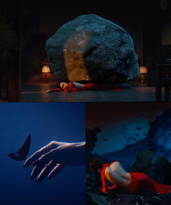 Tuy nhiên, khung hình bắt đầu xuất hiện hình bóng một chú bướm nhỏ bay tới, nhẹ nhàng đậu xuống tảng đá khổng lồ. Ngay khi chú bướm chạm đến, tảng đá bỗng nứt vỡ và sụp đổ. Gánh nặng được gỡ bỏ, Bích Phương nhẹ nhàng ngồi dậy giữa sự xuất hiện của một đàn bướm.