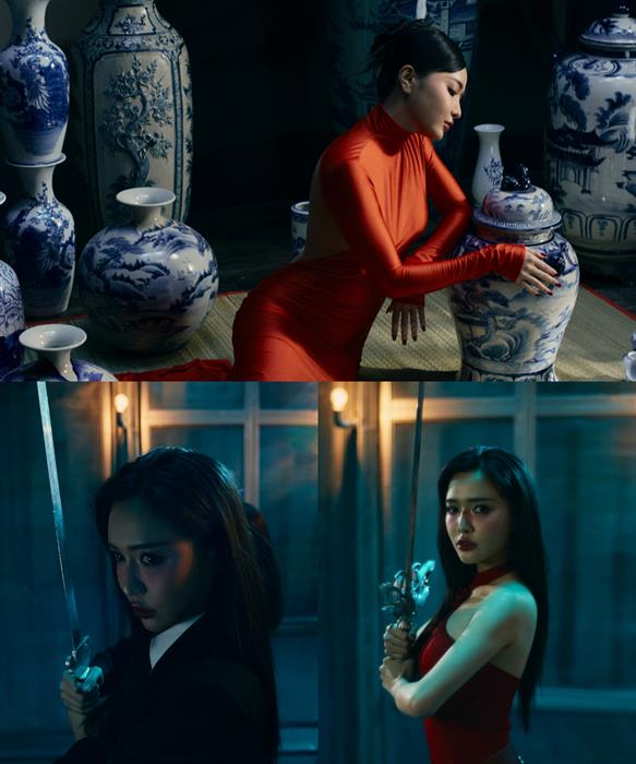 Hình ảnh 2 người phụ nữ đối đầu: Một bên đậm chất châu Á dịu dàng, một bên là găng-tơ mạnh mẽ lấy cảm hứng từ phim Kill Bill