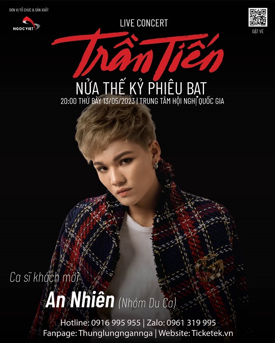 Concert Trần Tiến – Nửa thế kỷ phiêu bạt sẽ diễn ra vào ngày 13.5 tại Trung tâm Hội nghị Quốc gia Hà Nội. Chương trình là dịp ghi dấu chặng đường hoạt động nghệ thuật của nhạc sĩ Trần Tiến, hứa hẹn mang đến nhiều cung bậc cảm xúc với những bài hát đi cùng năm tháng của vị nhạc sĩ tài hoa này.