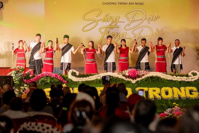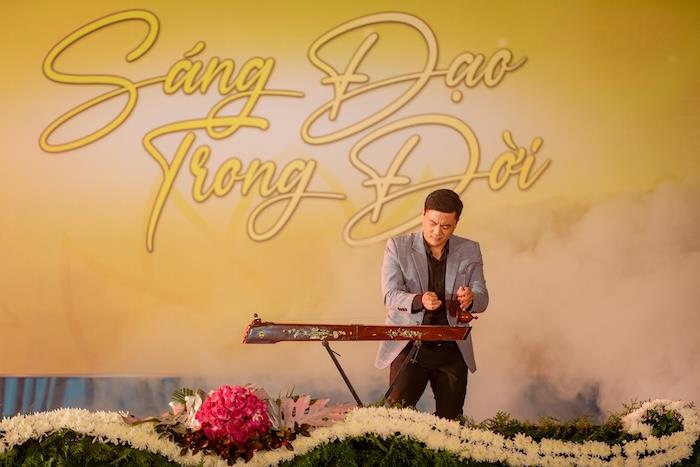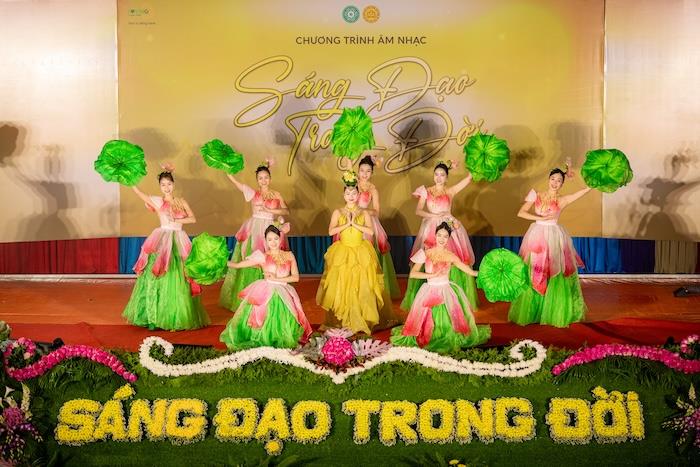 Buổi tối cùng ngày, chương trình văn nghệ ‘Sáng Đạo Trong Đời’ đã diễn ra, tạo điểm nhấn cho sự kiện. Đêm nhạc có sự góp mặt của các nghệ sĩ nổi tiếng như: NSƯT Hồng Liên, NSƯT Quang Hưng, ca sĩ Hồ Quỳnh Hương,… Các tiết mục biểu diễn không chỉ mang lại những giai điệu đẹp đẽ mà còn thấm đẫm giá trị nghệ thuật và ý nghĩa nhân văn sâu sắc. Sân khấu được dàn dựng chỉn chu, kết hợp giữa âm nhạc, ánh sáng và các màn trình diễn múa minh họa tinh tế, tái hiện một không gian nghệ thuật giàu cảm xúc, kết nối sâu sắc giữa giá trị văn hóa, tinh thần Phật giáo và đời sống thường nhật của khán giả.