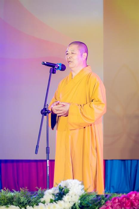Hoà thượng Thích Thọ Lạc – Uỷ viên Hội đồng trị sự – Trưởng ban Văn hoá TW Giáo hội Phật giáo Việt Nam phát biểu mở màn chương trình văn nghệ ‘Sáng Đạo Trong Đời’