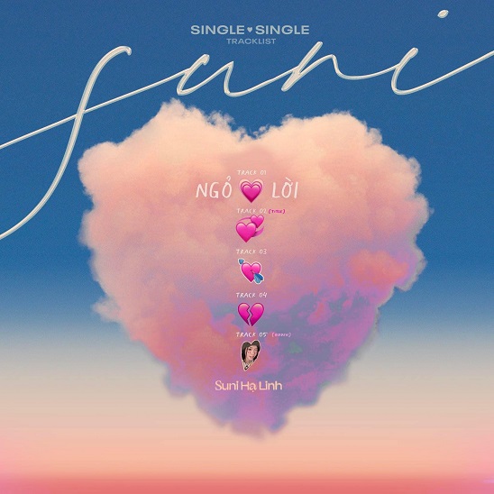 Tintuc - Mới đây, Suni Hạ Linh chính thức công bố sẽ trở lại đường đua âm nhạc với dự án “Single ❤️ Single” bao gồm 5 track. Hiện tại, nữ ca sĩ đã hé lộ về Pre-single (ca khúc mở đường) mang tên Ngỏ Lời, 4 track còn lại vẫn được giữ kín và chỉ thể hiện bằng các ký hiệu hình trái tim khác nhau trên tracklist poster.