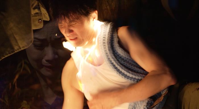Đỉnh điểm, trong một cảnh quay Thái San đã nằm xuống trên chiến trường vào lúc 12 giờ đêm, đạo diễn Đỗ Thành An chọn một gốc cây to nơi khu rừng thưa, giữa một bãi đất hoang vu để thực hiện cảnh bom nổ. Cũng lúc này, sự cố đã xảy ra khi bốc cháy vào mặt, cổ Thái San. Trước sự cố không ai lường trước xảy ra khiến ê-kíp hoảng loạn vội chạy lại lo lắng cho an nguy của Thái San.