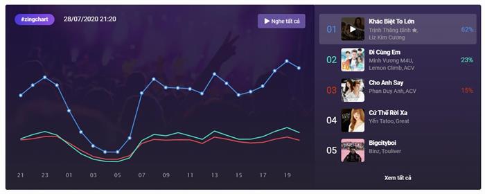 Khác biệt to lớn - sản phẩm mới nhất của Trịnh Thăng Bình và Liz Kim Cương phát hành độc quyền trên Zing MP3 vào 20g00 tối 26/7. Ngay sau 11 tiếng ra mắt, ca khúc lập tức thâu tóm vị trí top 1 #zingchart real-time.