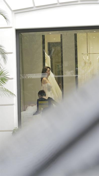 Tintuc - Minh Hằng bất ngờ xuất hiện tại LA FÉE Hà Nội để chuẩn bị cho váy cưới trong ngày trọng đại sẽ diễn ra vào tháng 6 tới. Minh Hằng đã chọn Galia Lahav, thương hiệu nổi tiếng từng thiết kế váy cưới cho Paris Hilton.