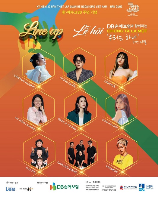 Nữ ca sĩ góp mặt trong dàn line-up đại diện Việt Nam biểu diễn trong lễ hội We Are Together – Chúng Ta Là Một diễn ra vào hai ngày 1 và 2/10. Chương trình nằm trong nằm trong chuỗi hoạt động kỷ niệm 30 năm thiết lập quan hệ ngoại giao Việt Nam – Hàn Quốc. Cô nàng sẽ đứng cùng sân khấu với một trong những giọng ca huyền thoại của Hàn Quốc – “nữ hoàng nhạc phim” Baek Ji Young tại sự kiện này.