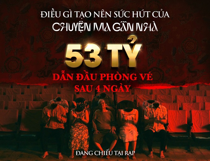 Tintuc - Theo nhà phát hành CGV, Chuyện Ma Gần Nhà cán mốc 53 tỷ đồng sau bốn ngày công chiếu đầu tiên. Phim ra mắt từ ngày 11/2 (thứ Sáu) và hiện bán được 670.000 vé. Tác phẩm dẫn đầu về phòng vé Việt cả về số suất chiếu và doanh thu sau bốn ngày.