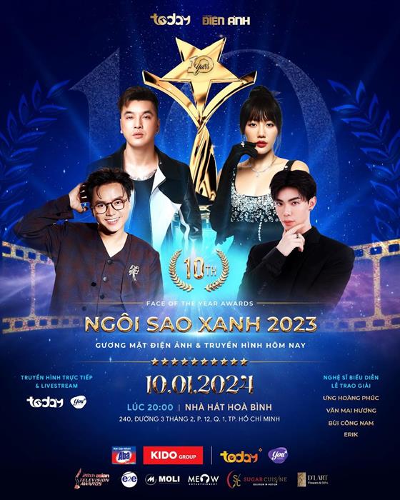 Cổng bình chọn giải thưởng Ngôi Sao Xanh đã chính thức khép lại lúc 15h00 ngày 05/01/2024 với nhiều ẩn số bất ngờ, kết quả top 3 dẫn đầu các hạng mục Điện ảnh, Truyền hình và Web Drama đã dần lộ diện và sẽ được công bố chính thức trong đêm gala trao giải diễn ra vào ngày 10/01/2024 tới đây tại Nhà Hát Hòa Bình, TP.HCM. Chương trình được truyền hình trực tiếp lúc 20h00 trên TodayTV và YouTV, livestream trên nền tảng TikTok TodayTV; fanpage Ngôi Sao Xanh, TodayTV, YouTV và youtube TodayTV, YouTV.