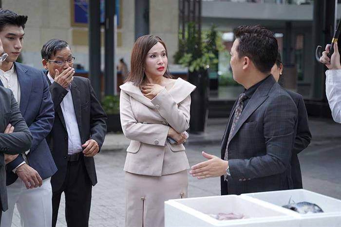 Tintuc - Trong ‘Chủ tịch giao hàng’, Khả Như vào vai Madam Đỗ Lệ sang chảnh, nhiều lần dùng lời lẽ sắc bén để kiểm tra năng lực Chủ tịch của Bường (Trường Giang).