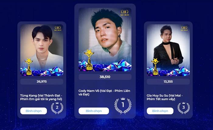 Tuấn Trần, Phương Anh Đào lần lượt xếp No.1 trên BXH Điện ảnh, ở giải ‘Cặp đôi được yêu thích nhất’ cả hai cũng có số vote bỏ xa các đề cử còn lại