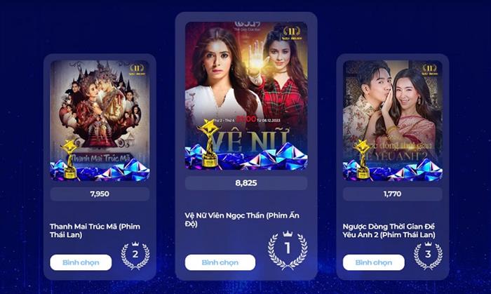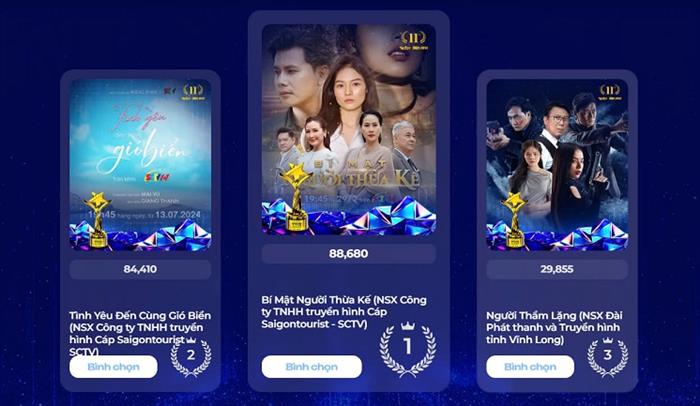 Top 3 bộ phim tạm “thống lĩnh” số lượt vote trên bảng xếp hạng là Bí Mật Người Thừa Kế, (Phim Truyền hình Việt Nam), Vệ Nữ Viên Ngọc Thần ( Phim Truyền hình nước ngoài) và Mắc Gì Tết (Web Drama – Không gian mạng).
