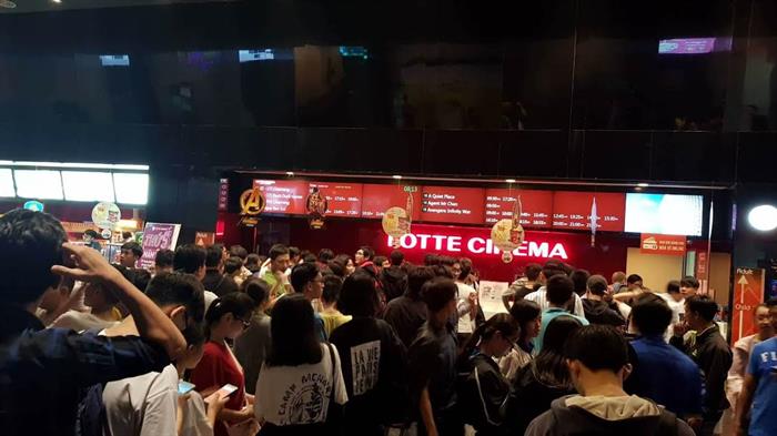Trong ngày đầu công chiếu, rơi trúng dịp nghĩ lễ, nên ngay từ sáng sớm các suất chiếu tại Lotte Cinema đã kín chỗ. Hàng dài khán giả xếp hàng lấy vé với sự sôi nổi, hào hứng chờ đợi siêu bom tấn lớn nhất năm 2018 này. Nhiều khán giả xếp hàng mua vé sớm cho buổi tối, thậm chí cho cả ngày hôm sau. Và chỉ trong buổi sáng, toàn bộ vé Avengers trong ngày đã được 'tẩu tán' hết. Các khán giả chậm chân hơn, đành mua vé cho các ngày sau nhưng cũng phải rất khó khăn khi các vị trí đẹp nhất đều có nhiều người đang cùng mua trên máy bán vé cũng như đặt trực tuyến qua website và ứng dụng. Khi nhu cầu xem Avengers đang cực kỳ lớn, vượt quá công suất của các cụm rạp trên toàn quốc thì một tin cực vui đến với các fan đó là ngày 28/4, Lotte Cinema cùng lúc mở thêm 3 chi nhánh mới với 14 phòng chiếu phim và khoảng 2,000 ghế ngồi. Dự kiến mỗi ngày chiếu được 6 suất phim, phục vụ thêm cho trên 1 vạn khán giả yêu phim mỗi ngày.