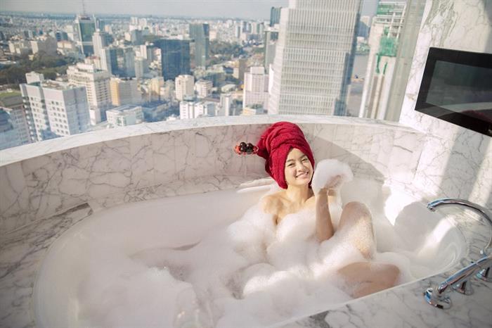 Nhà sản xuất MAR6 Pictures vừa tung loạt hình hậu trường cảnh quay Kaity Nguyễn ngâm mình trong bồn tắm, phía bên ngoài là toàn cảnh thành phố hiện đại với đỉnh các tòa nhà chọc trời.