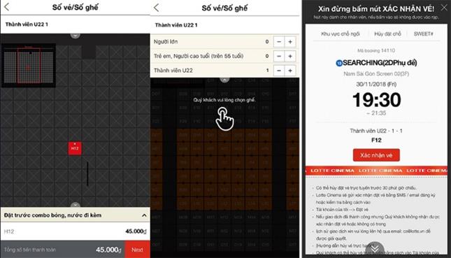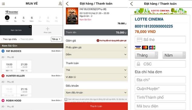 Chưa hết, hệ thống mới của Lotte Cinema hỗ trợ trả tiền bằng thẻ ngân hàng, ví điện tử cực nhanh, cùng với đó, thông báo đặt vé thành công được hiển thị trực tiếp trên ứng dụng trong tài khoản của bạn. Vé điện tử trên ứng dụng giúp bạn có thể vào rạp ngay mà không cần mất công lên rạp xếp hàng chờ đợi lấy vé.