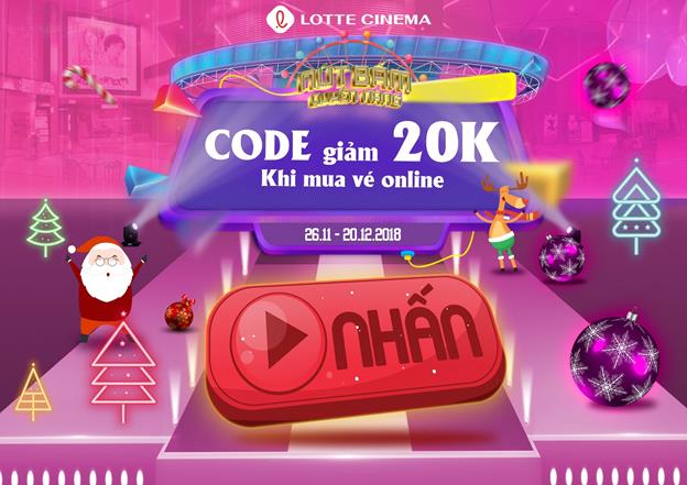 Tiếp sức cho khán giả mê phim, Lotte Cinema tặng ngay hàng ngàn code ưu đãi giảm giá khi mua vé phim trực tuyến mỗi ngày. Chỉ cần đăng nhập tài khoản, vào phần Khuyến Mãi và tham gia trò chơi Nút Bấm Quyền Năng, có ngay code giảm 20,000 VNĐ nhé.
